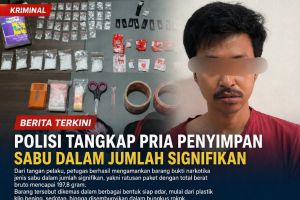 Selain itu, turut diamankan sejumlah barang pendukung seperti timbangan digital, plastik klip, alat hisap, satu unit telepon genggam, serta kendaraan roda dua yang diduga digunakan dalam aktivitas peredaran.